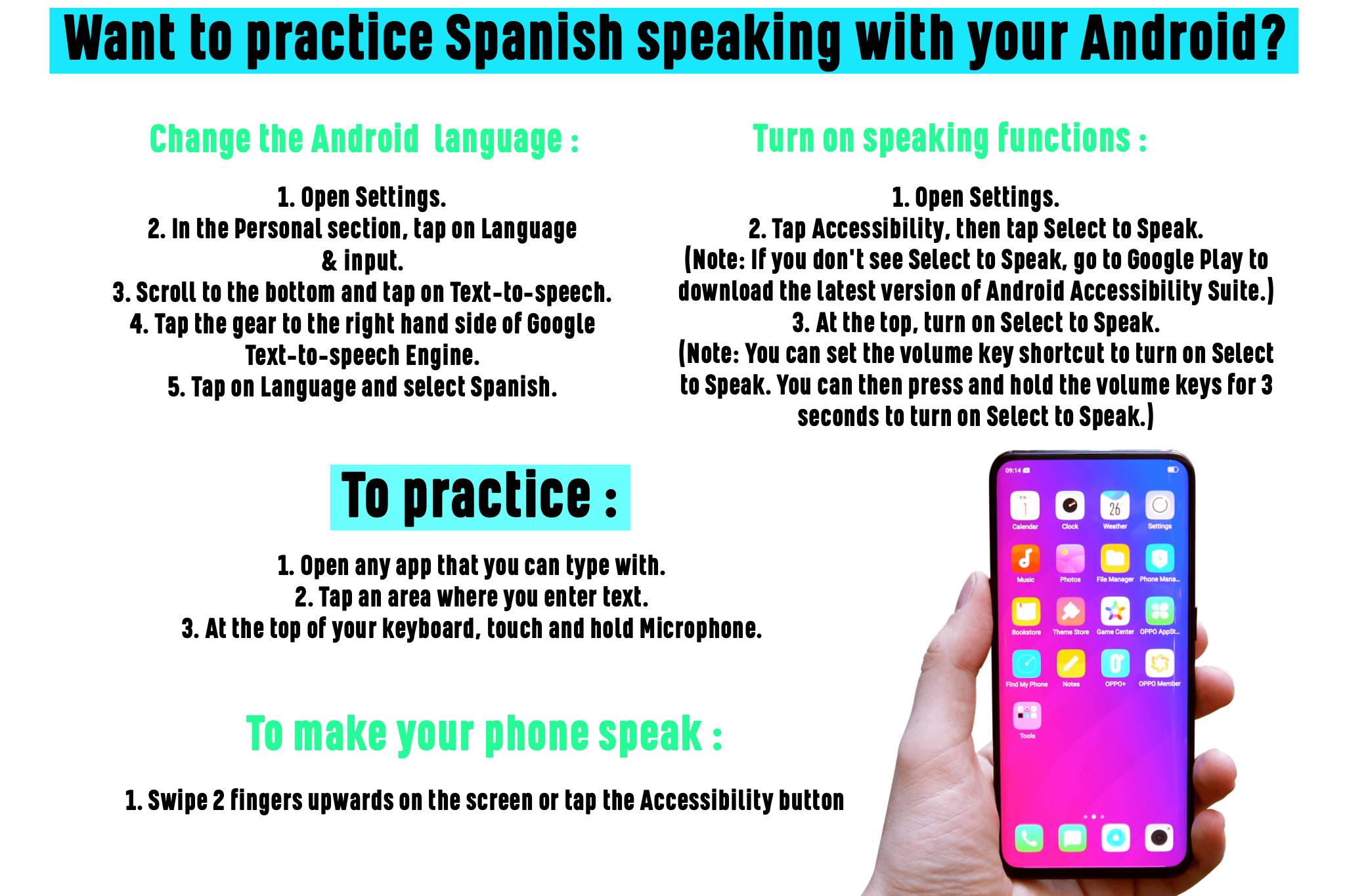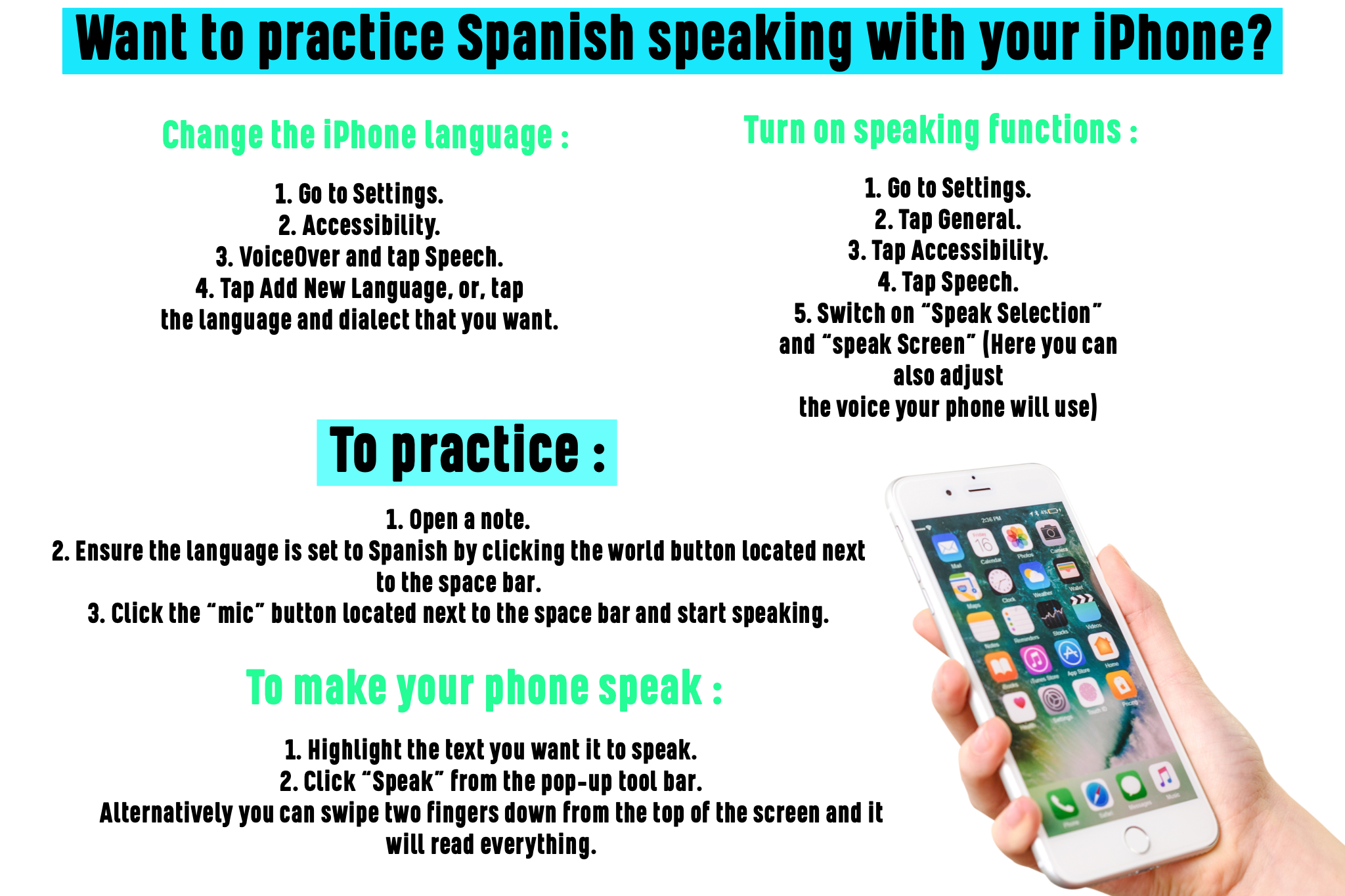 Instrucciones para usar su celular / móvil para practicar pronunciar español
